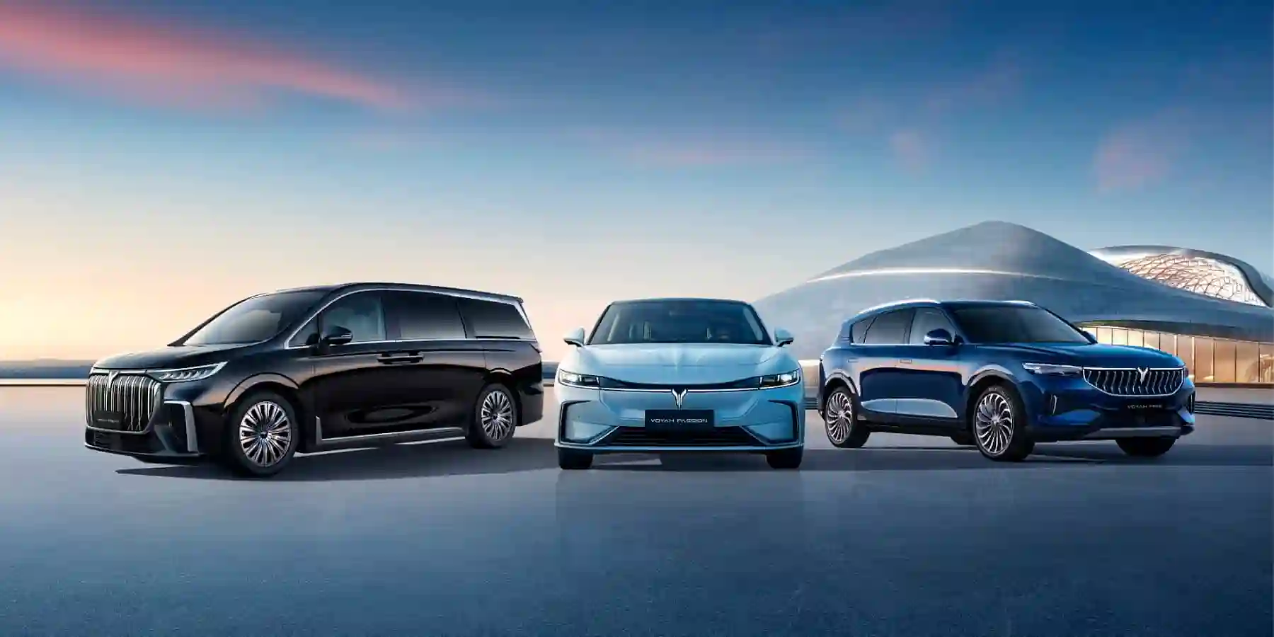 Модельная линейка бренда люксовых электромобилей VOYAH включает в себя кроссовер ФРИ / FREE в нескольких модификациях, в том числе с увеличенным запасом хода EVR, роскошный минивэн МЕЧТА / DREAM в гибридной и полностью электрической версиях, а также инновационный седан СТРАСТЬ / PASSION.