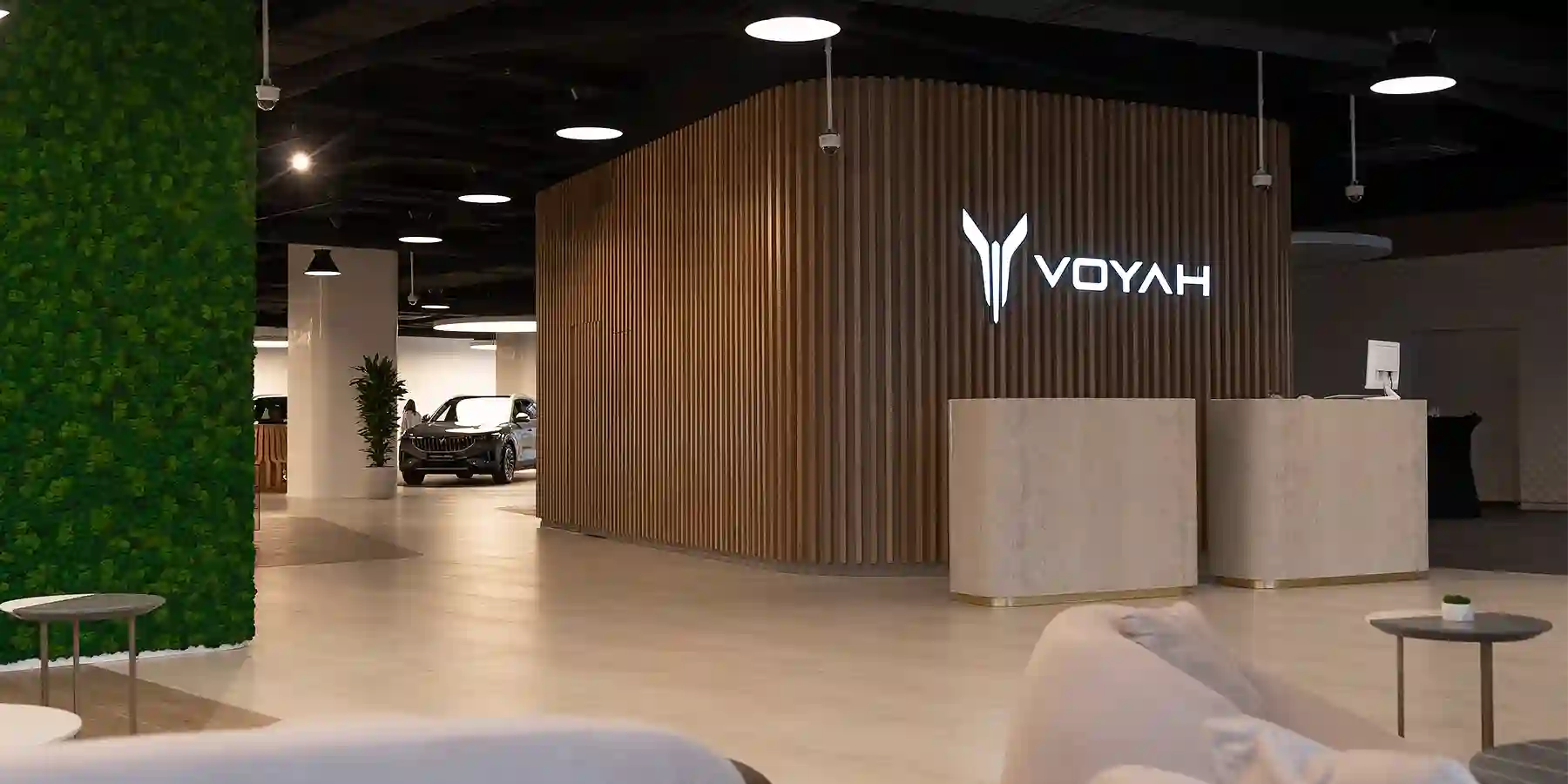 Элегантный бутик построен в соответствии с концепцией международных корпоративных стандартов VOYAH. Светлое, просторное и тихое пространство, пока единственное в стране, создано в новом визуальном стиле VOYAH с целью погрузить клиента в философию бренда. Использованные в отделке природные цвета и материалы, элементы фито-дизайна создают ощущение уюта и словно переносят в атмосферу тропического острова, где человек живет в гармонии с природой, напоминая нам о концепции Новая эра технологических открытий*, заложенной в основу самого бренда.