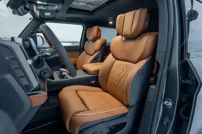 Габариты модели не менее внушительны: длина 5066 мм, ширина 2080 мм, высота 1934 мм. А вот багажник скромный, всего 452 л (для сравнения: у УАЗ Hunter 470 л).