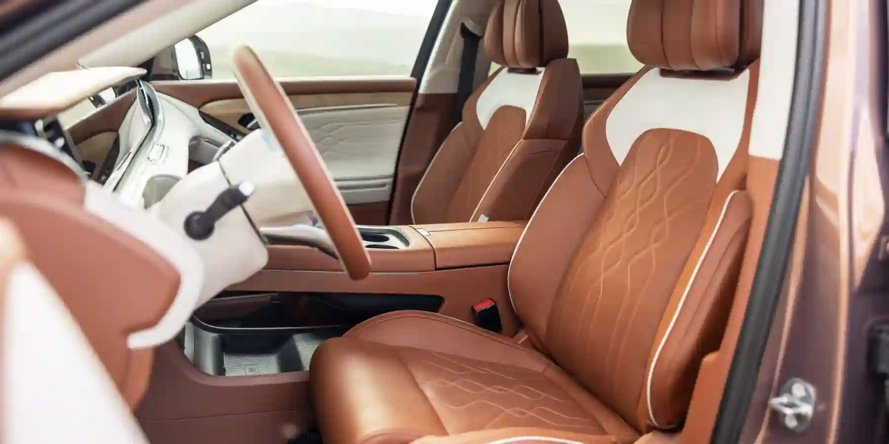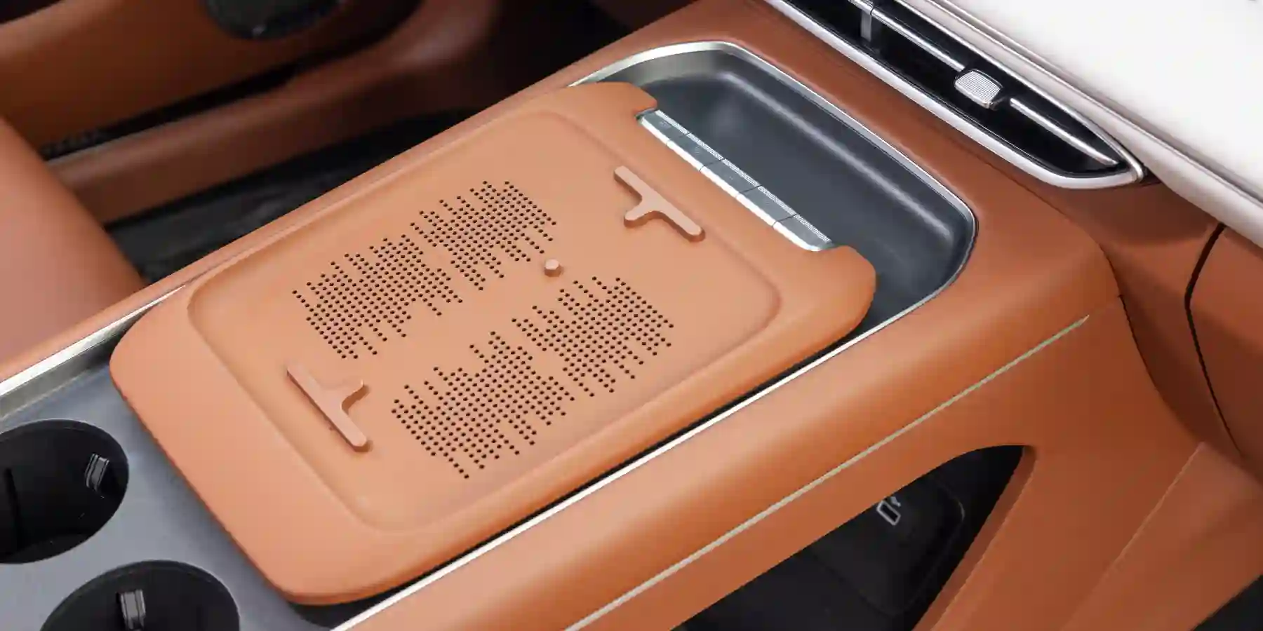 Одно из заметных изменений — новый селектор трансмиссии: он переехал на рулевую колонку. От привычного селектора решили отказаться в пользу дополнительного пространства. Теперь на его месте — удобная площадка для беспроводной зарядки смартфонов и хранения мелочей.